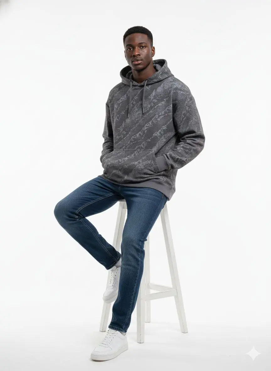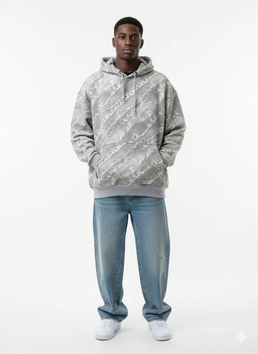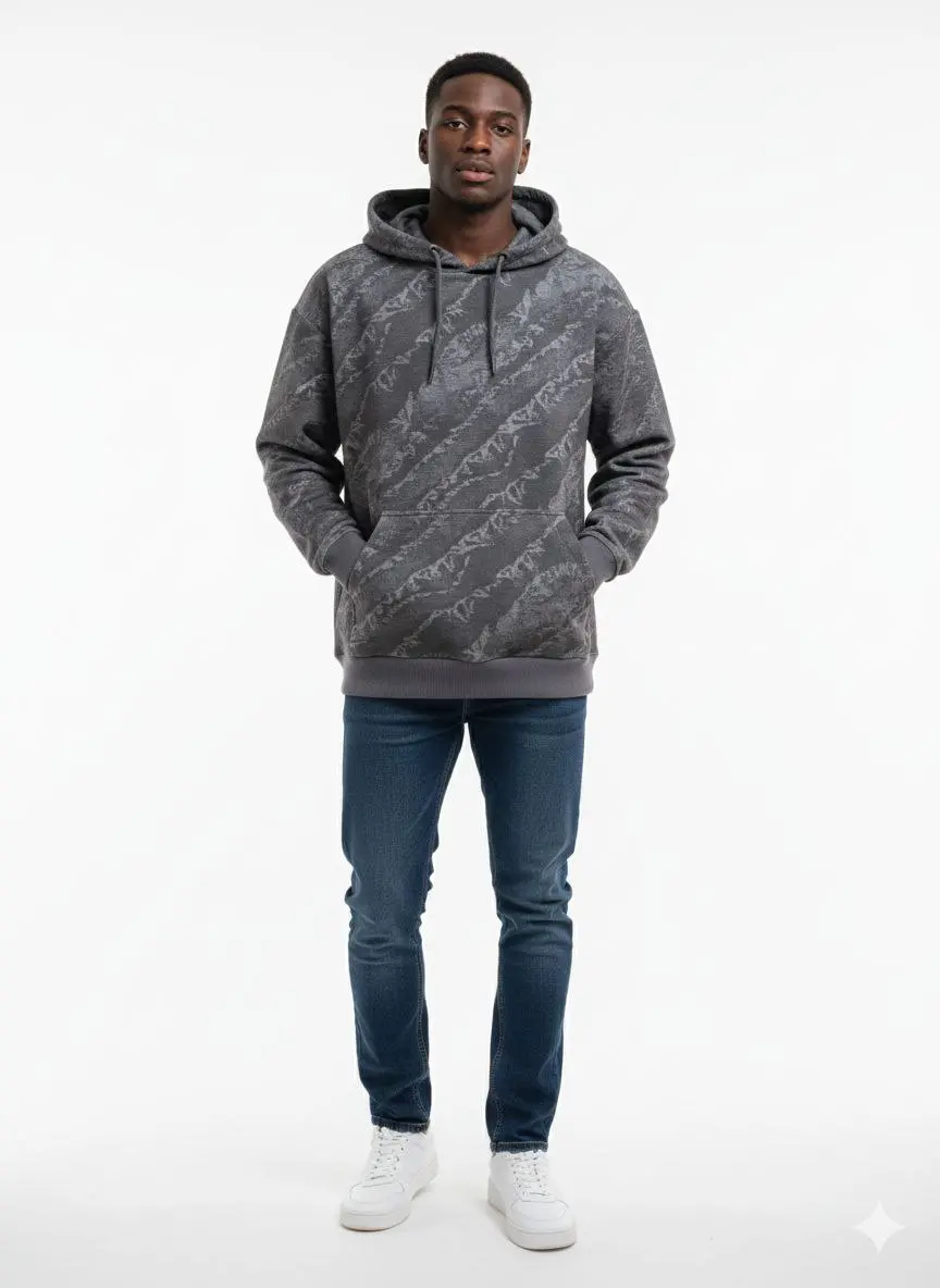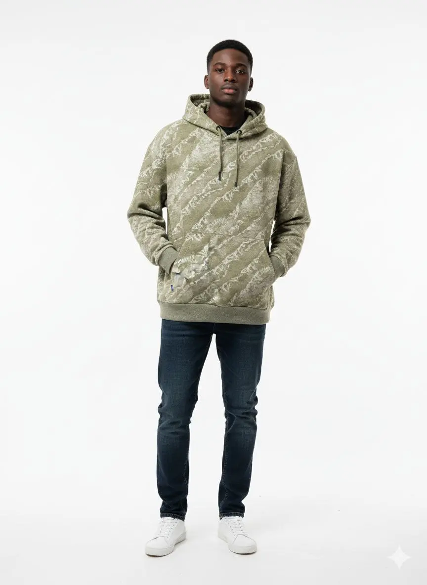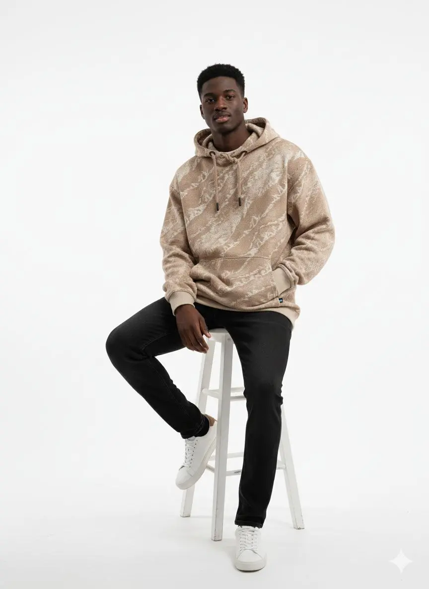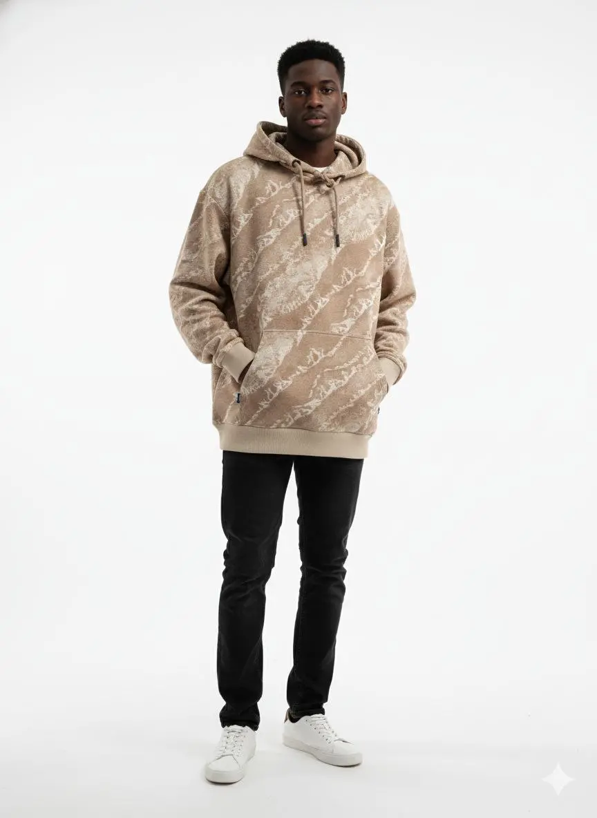 ارتقِ بستايلك اليومي مع هذا الهودي الفريد الذي يجمع بين الراحة الفائقة والتصميم العصري. يتميز بنقشة تجريدية (Abstract Pattern) مستوحاة من ألوان الطبيعة والرمال، مما يجعله قطعة "Statement" مميزة في خزانة ملابسك.